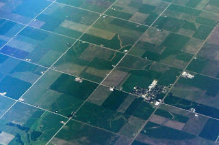 Last night we spent the night in a Phoenix hotel so we could catch the first flight out this morning. With the time change it is the only reasonable way to fly to the East Coast. Flying over our old home state of Illinois, I was amused to see the perfect grid structure of Illinois' vast flat prairie farmland. When we flew next over Chicago and saw the same city grid street plan, I realized the whole state had been subdivided the same way from its inception.